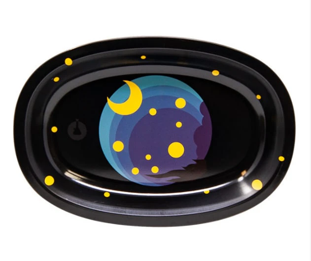 This oval rolling tray is 8.5 inches X 5.5 inches, weighs 80g, and is designed with curved interior edges to stop any cannabis from escaping or getting stuck in corners.